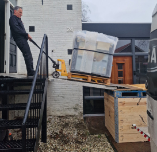In opdracht van een relatie werd een 6x4 uit een split level woning verhuisd. Met een beetje creativiteit transporteerden we het fornuis naar onze bus.